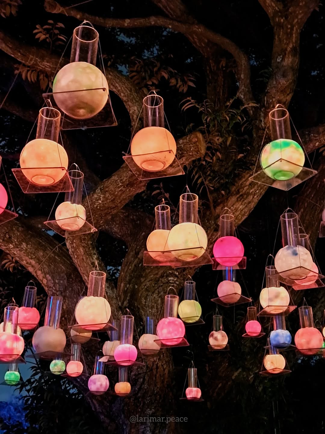 湘南キャンドル2025で撮影されたお写真です。ガラス瓶の中で光る鮮やかな色が夜に映えて、とても美しく感じられます。