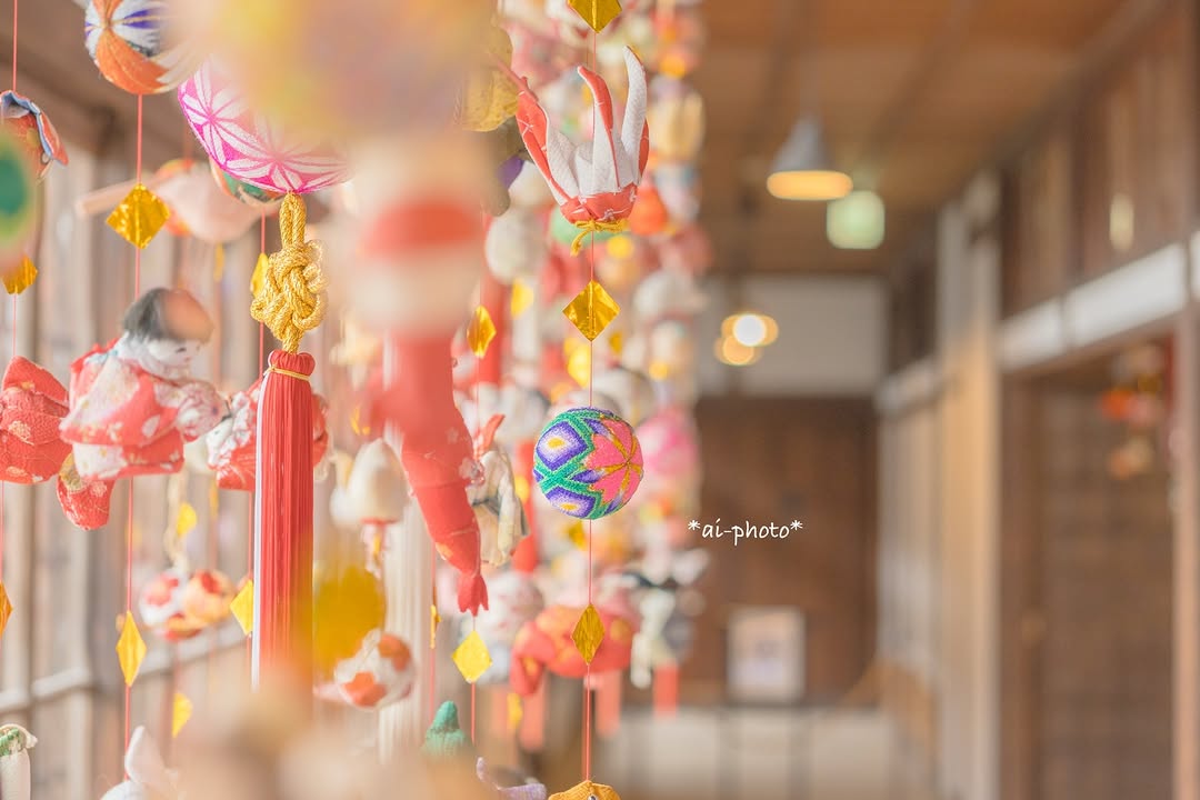福岡・柳川のさげもんまつりで撮影されたお写真です。女の子が生まれると、健やかな成長を祈って初節句に飾られるというさげもん。ころころとした手毬やお人形の淡い色合いが、春らしくて可愛らしいです!