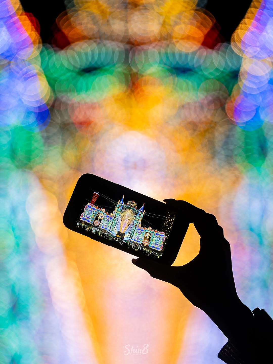 神戸ルミナリエでの一枚。スマートフォンを通して撮影するという斬新な構図に驚きです!画面に映ったもの、後ろでぼやけたもの、どちらのイルミネーションもとても美しい、技巧に満ちた作品でした。