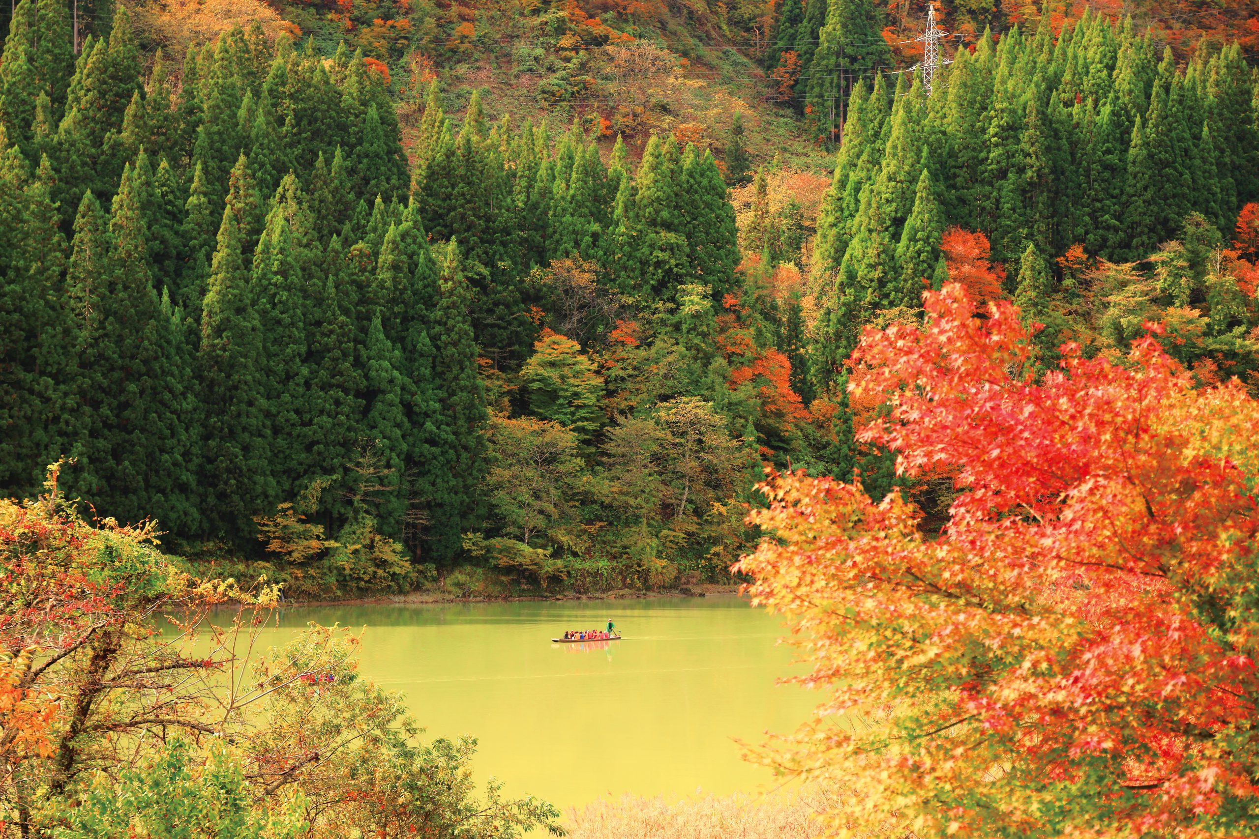 昭和39年(1964)に山の崩落で廃村となった集落への渡し舟がある。深い自然の中を和船が手漕ぎで進むお伽噺のような舟だ。かつては只見川の両岸を結ぶ生活の足だったもので、平成22年(2010)に復活。廃村にはいまもなお古民家や硫黄鉱山があり、なかでも大山祇神社や子安観音、お地蔵さまは度重なる災厄を逃れて続いたことからパワー・スポットとしても知られている。