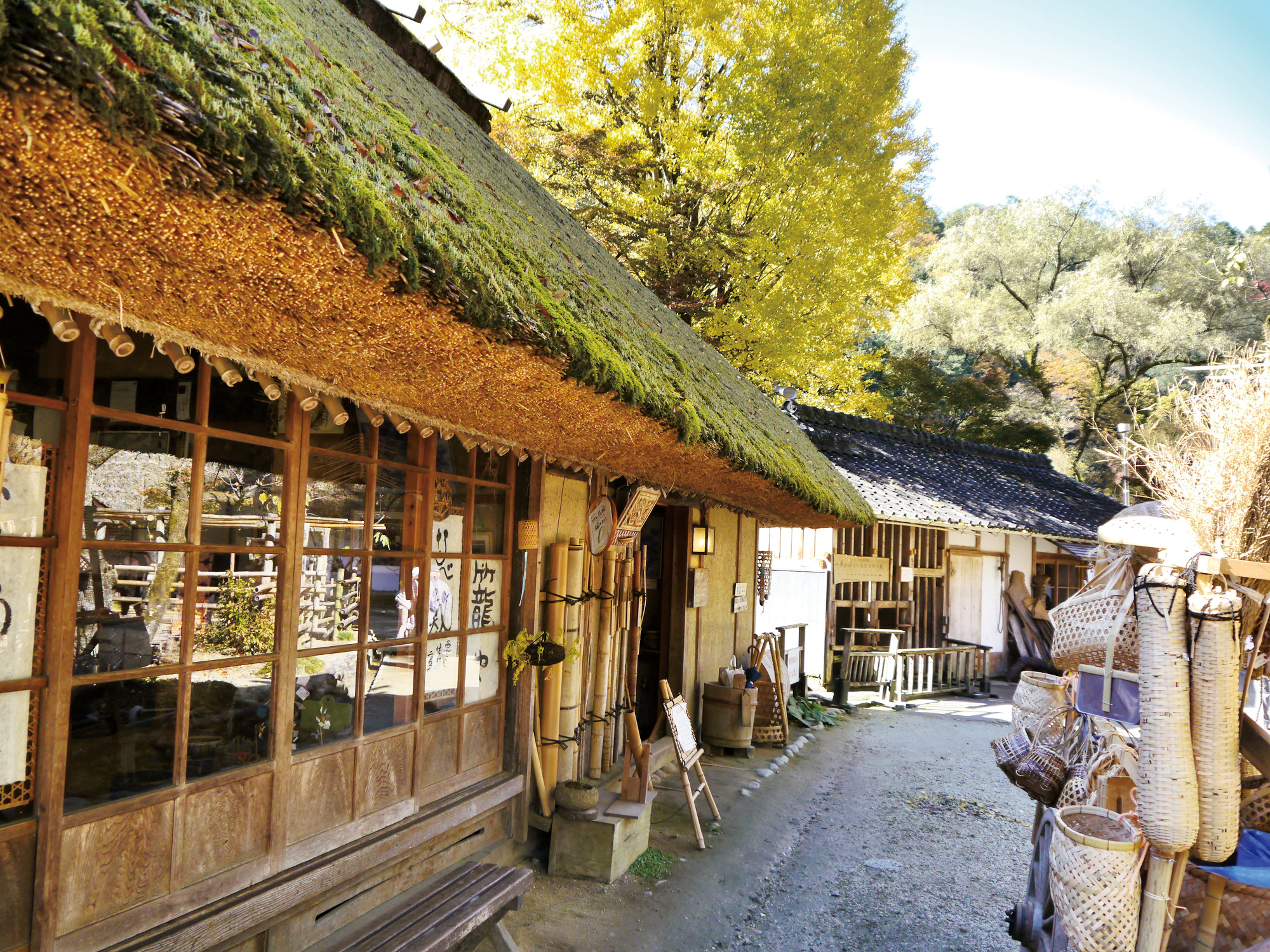 その足助にかつての豪農の屋敷を再現した民俗資料館がある。地元の竹を使った骨組みに屋敷内で漉いた三河森下紙を張る番傘屋、網目が見た目に美しく長持ちする竹籠屋、ろくろでお椀や皿、盆などを削り出す木地屋などがあり、作業の見学や商品の購入が可能。機織り、藍染め、藁草履作りといった作業体験も好評を博す。
