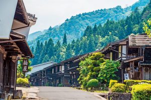 妻籠同様、国の重要伝統的建造物群保存地区に指定。
